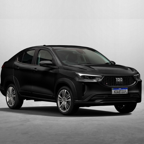Fiat Fastback 2026 (sedã): veículo elegante com 3 lugares para passageiros e espaço para bagagem moderada, câmbio automático, bancos de couro, acabamento refinado, ar-condicionado dual zone, tecnologias de assistência ao condutor.